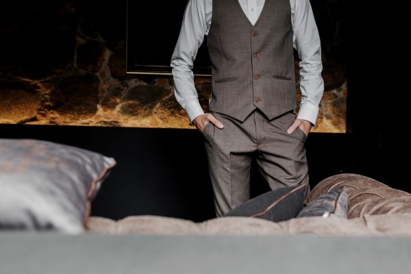 スリーピーススーツとは、ジャケット・パンツ・ベストの3点で構成されるクラシックなスタイルです。