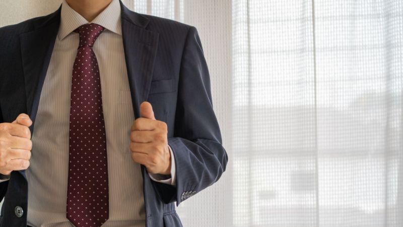 ビジネス用なら濃紺やチャコールの無地、あるいは細いストライプがおすすめです。一方で、式典に臨む場合は濃いブラックを選ぶと落ち着いた印象になりますよ。