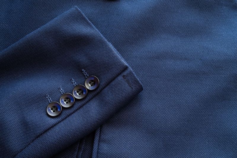 スーツは近くで見られたときこそ、ボタンやステッチといった細部が印象を左右します。標準仕様はプラスチックボタンですが、水牛・ナット・貝ボタンに替えると質感が一段上がりますよ。